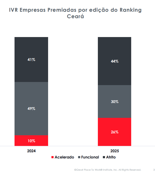O Great Place To Work®, consultoria global que atua com a missão de construir uma sociedade melhor por meio de ambientes de trabalho mais saudáveis, divulgou a 16ª edição do Ranking das Melhores Empresas Para Trabalhar™ no Ceará. O levantamento contou com 140 empresas participantes, impactando 115 mil colaboradores. Entre elas, 50 organizações foram reconhecidas como as melhores: 10 de pequeno porte, 30 de médio e 10 de grande.
