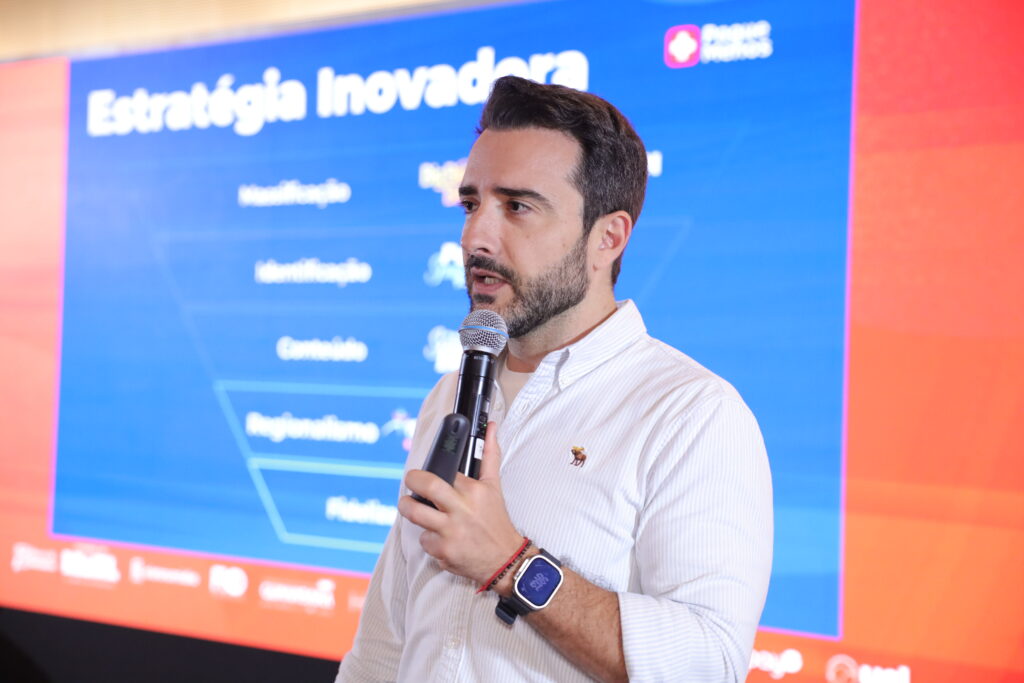 Renato Camargo finalizou sua palestra, explicando sobre a estratégia inovadora da Pague Menos para expandir sua visibilidade e fidelizar clientes. Entre as ações, o executivo destacou a participação da rede de farmácias em reality shows como o Big Brother Brasil e em festivais como o The Town; nomeação de embaixadores de marca que criem identificação com o público, como Juliette e sua mãe Dona Fátima; investimento em eventos esportivos; e criação de conteúdo com linguagem simples e acessível por meio da Plataforma Sempre Bem e presença ativa nas redes sociais.