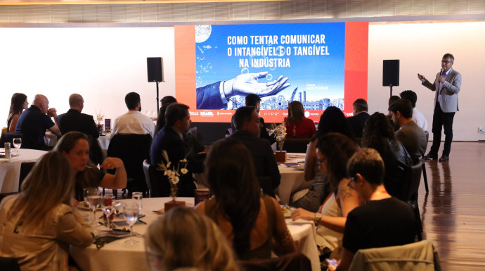 André Curvello foi o primeiro a se apresentar, introduzindo o intangível como “aquilo que está em nossas vidas, mas não conseguimos enxergar”. O executivo usou como exemplo o chamado Custo Brasil, que se refere ao conjunto de dificuldades estruturais, burocráticas e econômicas que encarecem a produção e o ambiente de negócios no país. Esse custo vale cerca de R$1,7 trilhão por ano ao setor da indústria brasileira.