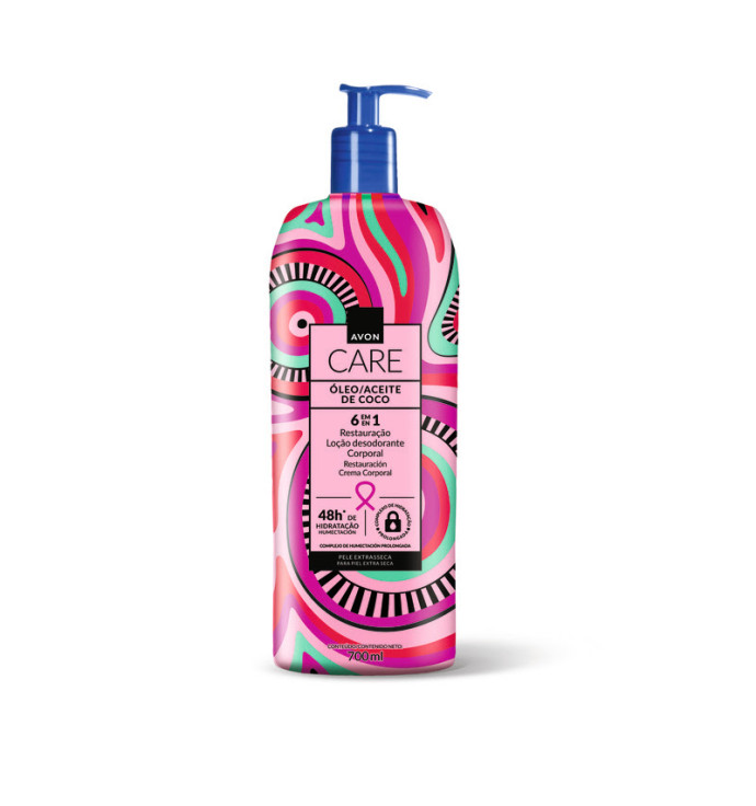 Ainda como parte da iniciativa em apoio à Campanha e ao Outubro Rosa, a marca relançou a embalagem especial da loção corporal Avon Care Óleo de Coco 700ml, um dos destaques do portfólio “Ofertas do Bem”. Além da loção, o portifólio inclui produtos de beleza como esmaltes e batons, que unem propósito e consumo consciente. A iniciativa reforça o compromisso contínuo da Avon em promover ações que geram impacto positivo na vida das mulheres.