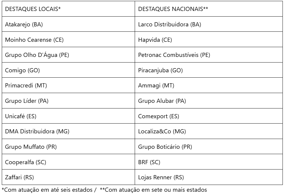 Entre as empresas analisadas, a pesquisa destacou 22 marcas, uma local e uma nacional de cada estado, conforme quadro abaixo: