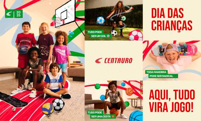 “Queremos lembrar que a infância é feita de movimento, imaginação e conexão. Com a campanha ‘Aqui, Tudo Vira Jogo’, convidamos as famílias a redescobrirem a alegria de transformar qualquer espaço em campo, quadra ou pista, longe das telas e perto uns dos outros. Mais do que celebrar o Dia das Crianças, reforçamos nosso propósito de transformar vidas por meio do esporte, dentro e fora das lojas, com experiências que criam memórias e com ações sociais que ampliam o acesso ao brincar e ao movimento”, afirma Gleyce Oliveira, diretora de marketing da Centauro.
