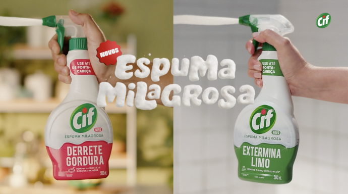 “A campanha nasceu do desejo de transformar um desafio cotidiano, como a limpeza das sujeiras que insistem em não sair, em algo leve e divertido, capaz de criar uma conexão emocional com o público. A escolha de ‘Não Aprendi Dizer Adeus’ como trilha sonora foi estratégica: um clássico chiclete que todo mundo conhece e que, combinado com as carinhas animadas das sujeiras, dá vida a uma narrativa bem-humorada e memorável, traduzindo de forma lúdica o poder de limpeza dos novos produtos. Queríamos mostrar que, com Cif Espuma Milagrosa, até as sujeiras mais grudentas podem se despedir sem esforço com Derrete Gordura e Extermina Limo”, comenta Nayara Lima, diretora de criação da Droga5.