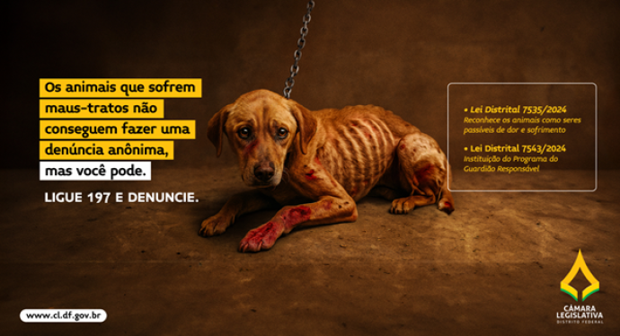 A campanha, com veiculação entre agosto e setembro em plataformas digitais e veículos offline, traz mensagens de impacto como “os animais vítimas de maus-tratos não conseguem fazer uma denúncia anônima, mas você pode”, reforçando o papel de cada cidadão na defesa do bem-estar animal. As peças serão divulgadas em canais como site da CLDF, YouTube, Meta e mídia tradicional.