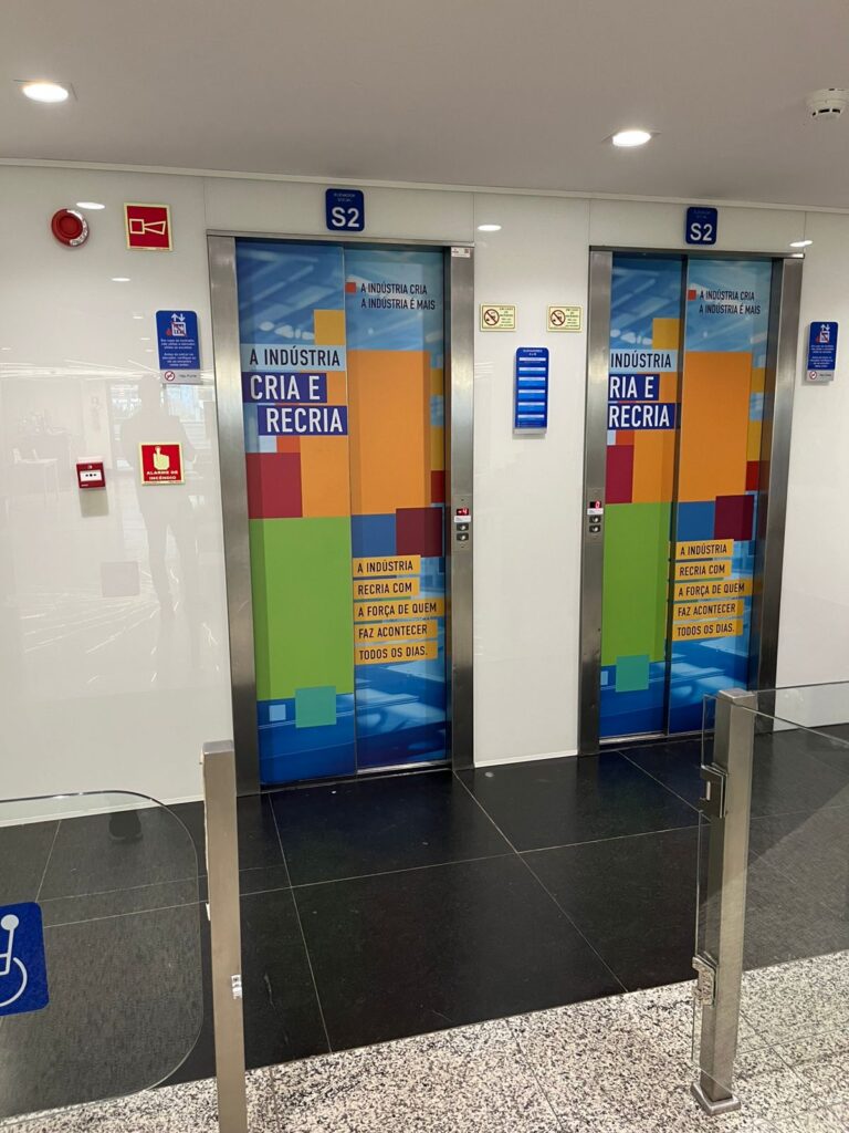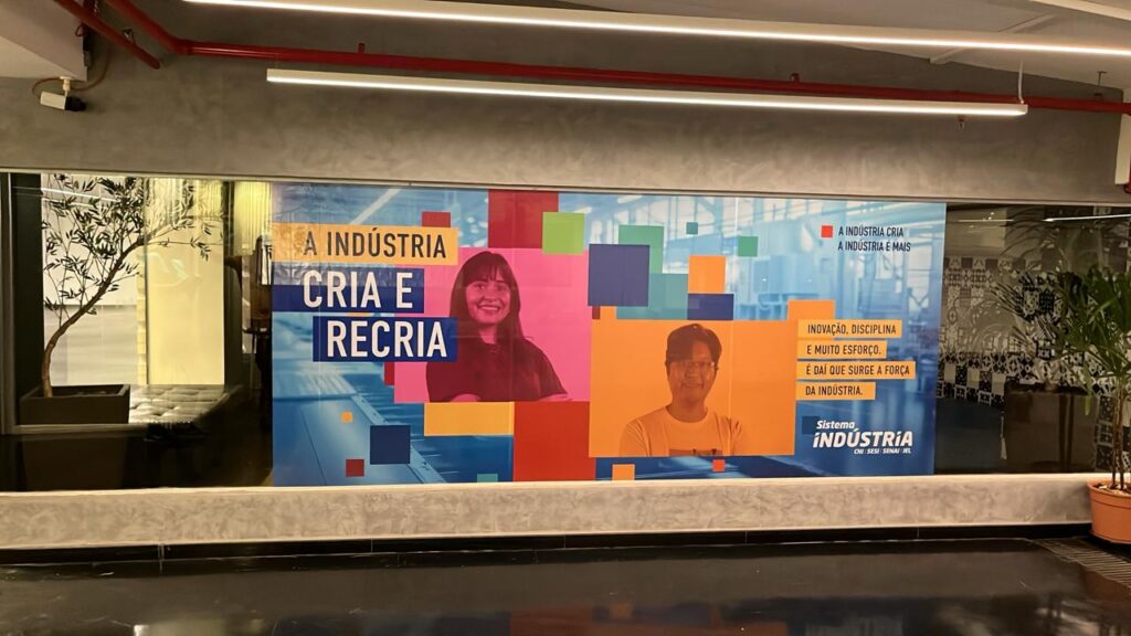 Antes de impactar o público em geral, a campanha chegou na sede da CNI em Brasília sendo estampada nos corredores da unidade.