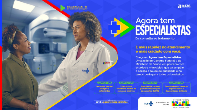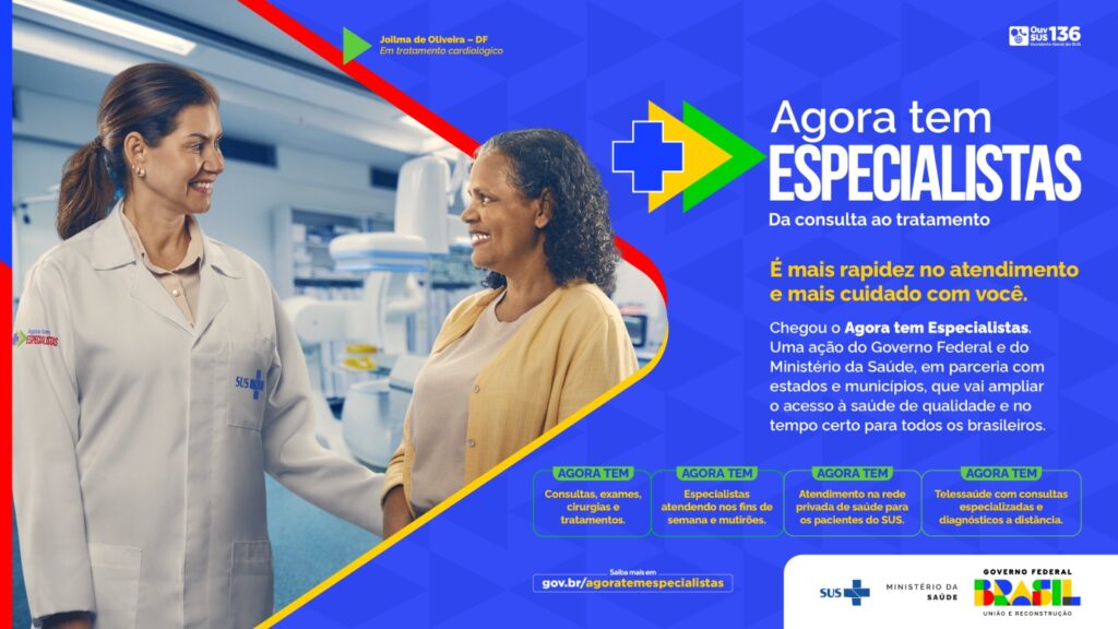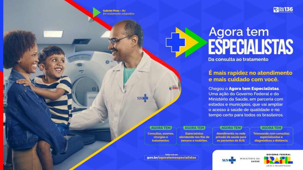 A campanha intitulada “Agora tem Especialistas” e leva médicos especialistas para mais perto de quem precisa reduzindo a espera por atendimentos no Sistema Único de Saúde (SUS)