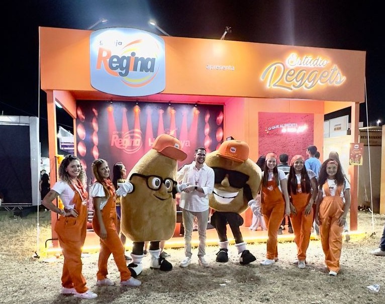 A Granja Regina, marca da Pole Alimentos, levou ao público do Festival Halleluya uma ativação especial com os Reggets, sua linha de empanados de frango. A ação contou com um estúdio temático onde os visitantes puderam simular uma apresentação musical em um palco, com instrumentos e cenografia personalizada. O momento foi gravado e disponibilizado para compartilhamento nas redes sociais, promovendo uma experiência lúdica, interativa e divertida com a marca.