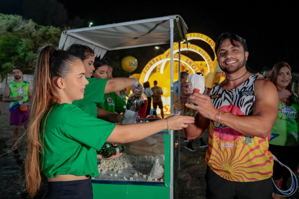 Apostando em uma ativação de experimentação e conexão emocional, a Guaraná Antarctica promoveu oito “invasões” com distribuição gratuita de pipoca e guaraná em pontos estratégicos como a entrega de abadás, a concentração do evento, o Camarote Mucuripe e até o esquenta promovido por Skol na praia. Carrinhos de pipoca personalizados e promotores caracterizados reforçaram o lado afetivo da marca, conectando-a com o público jovem e familiar do evento.