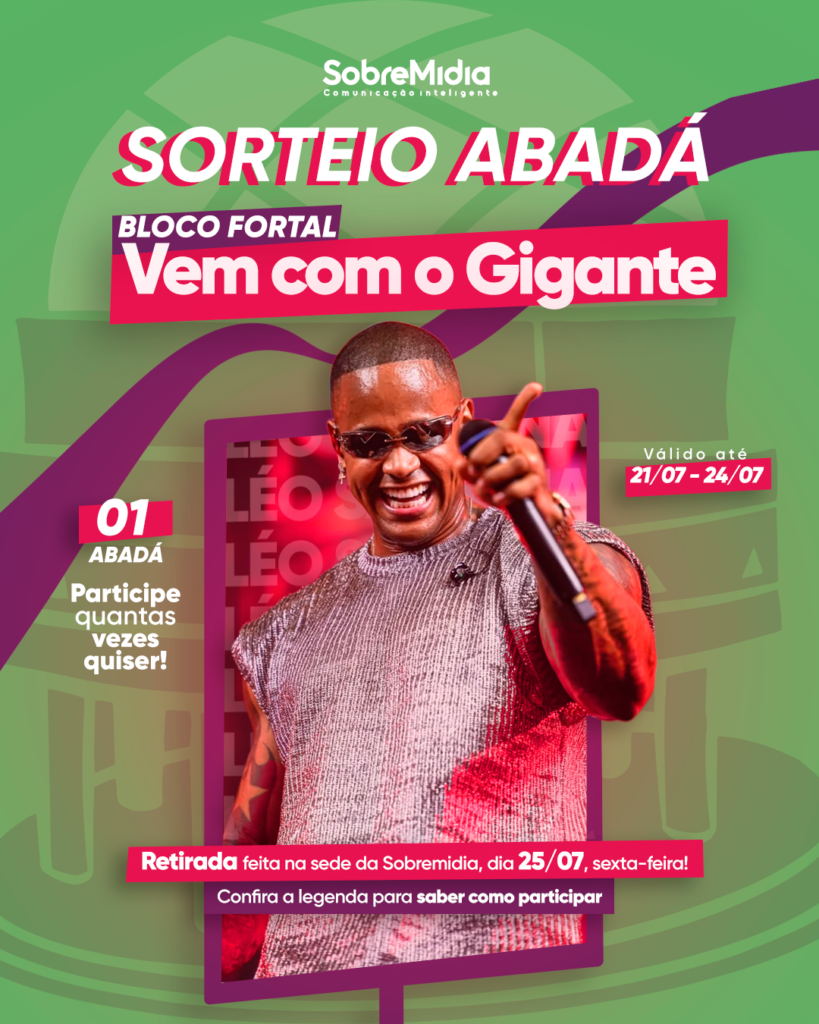 A SobreMídia promoveu uma campanha promocional em suas redes sociais com o sorteio de um abadá para o bloco “Vem com o gigante”, que aconteceu no último sábado (26).