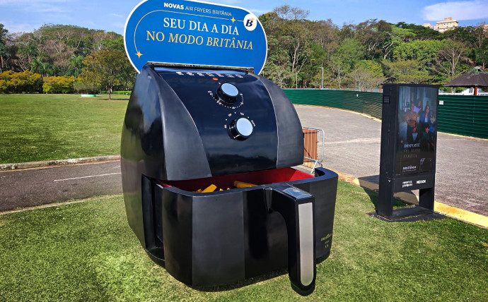 A Britânia, marca curitibana de eletrodomésticos, lançou mais uma ação interativa referente a campanha “O seu dia a dia no modo Britânia”, criada para promover os novos modelos de fritadeiras BFR50 e BFR51. Com idealização da Calia e produção da BIZSYS, quatro Air Fryers gigantes foram instaladas em locais de grande circulação – três em formato de relógios de rua e uma em um parque. Duas delas estão em São Paulo, na Avenida Paulista e no Parque Villa Lobos, enquanto as restantes estão em Florianópolis, na Avenida Paulo Fontes, e em Curitiba, na Praça Rui Barbosa.