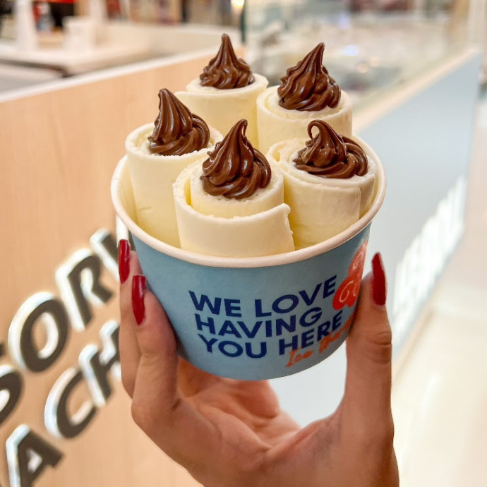 A rede é famosa pelo sorvete tailandês, mais popularmente conhecido como “sorvete de chapa”, feito na hora, com mais de 1,4 mil combinações de elementos, entre sabores de massa, cobertura e toppings. A nova unidade traz, além do carro-chefe, outros formatos: o “Taco Roll”, com o sorvete dentro de uma casquinha, no formato da iguaria mexicana, com adicional de cobertura e topping; o “Fondue Roll”, uma combinação de três rolinhos com frutas, mergulhados em chocolate derretido; além do gelato e do sucesso gelato no palito, novidade de 2023 e produto único no Brasil, com milhares de possibilidades de personalização.