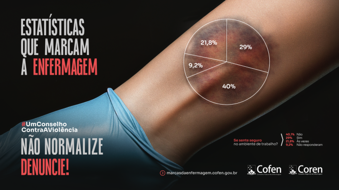 Com linguagem direta e impacto emocional, a campanha reforça o compromisso do Cofen em dar visibilidade ao tema e cobrar medidas efetivas de combate à violência. Além de sensibilizar a sociedade, a iniciativa busca apoiar o Projeto de Lei nº 6.749/2016, que propõe o aumento das penas para crimes cometidos contra profissionais da saúde.