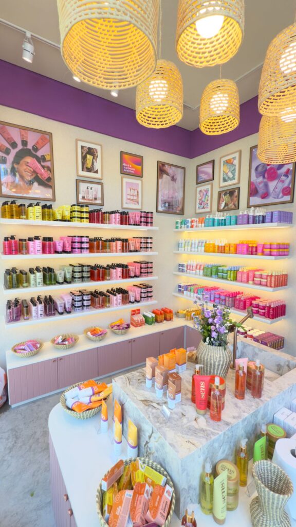 A loja proporciona uma experiência sensorial em beleza e autocuidado