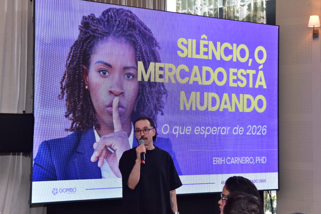 Erih Carneiro apontou que as principais ideias que moldarão 2026 são a integração onipresente da IA, o paradoxo da busca do consumidor por eficiência digital e conexão humana, o bem estar holístico e a recalibração econômica, onde consumo é mais intencional e menos leal. “Lealdade do consumidor é artigo em extinção”, afirmou. O CEO da Gombo também abordou sobre as novas configurações sociais do Brasil, marcadas pela reconfiguração das famílias brasileiras, o envelhecimento populacional e a economia prateada e as contradições por trás da cultura da população mais jovem.