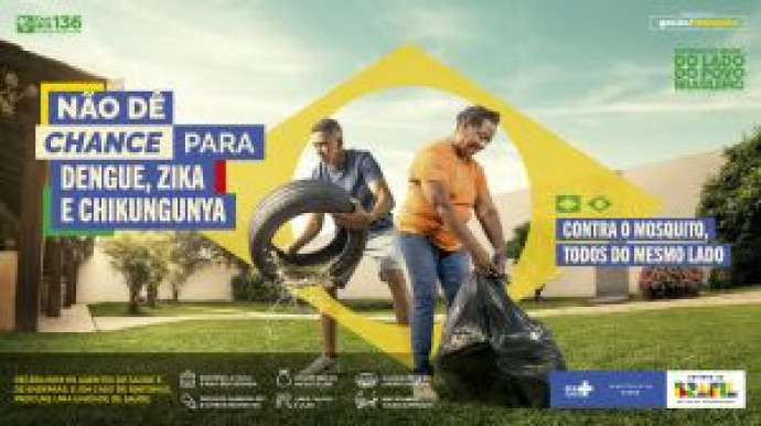 Com “Não dê chance para a dengue, zika e chikungunya”, o Ministério da Saúde convida cada cidadão a se tornar um agente ativo na proteção de sua família e da sua comunidade. Contra o mosquito, todos do mesmo lado.