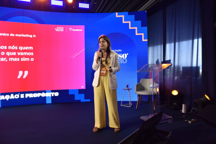 O Bradesco esteve presente no NM2B 2024, com a participação de Nathalia Garcia. A diretora de marketing começou sua palestra apresentando um breve histórico sobre a instituição financeira, ressaltando seu estilo vanguardista com os investimento em novas tecnologias desde a sua fundação.