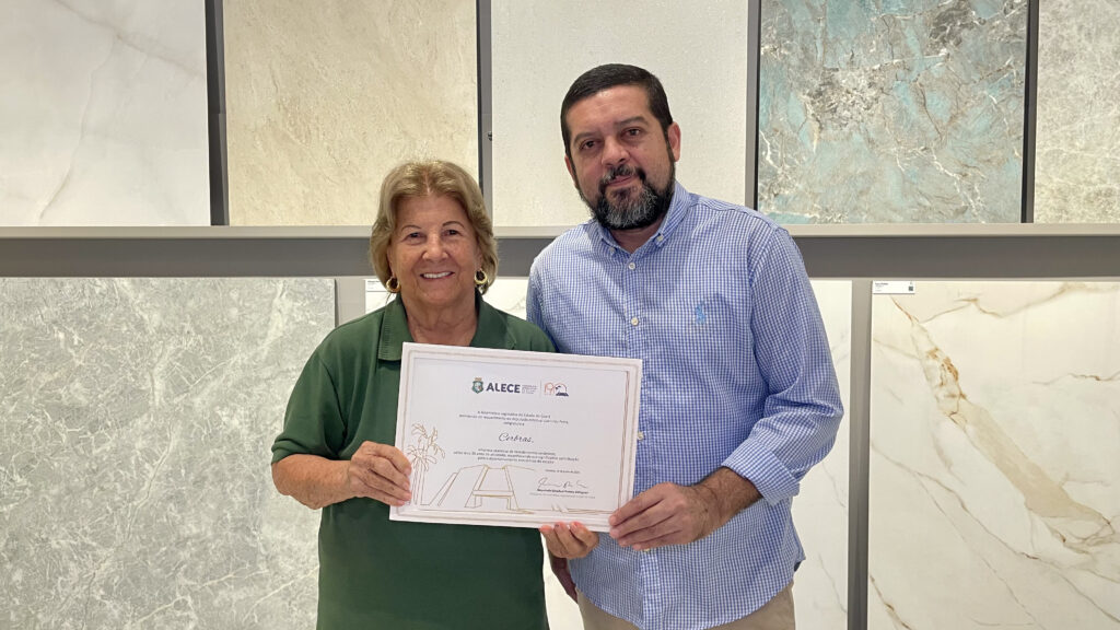 A Cerbras, indústria de produção de cerâmicas e porcelanatos de alto padrão, foi homenageada pela Assembleia Legislativa do Estado do Ceará. A homenagem reconhece os 35 anos de contribuição da empresa para o desenvolvimento econômico do estado e foi proposta pelo deputado estadual Lucinildo Frota, com entrega realizada pelo presidente da Casa, Romeu Aldigueri. A presidente da Cerbras, Ana Lúcia Mota, recebeu a honraria em nome da empresa.