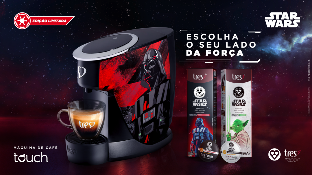“Agora todos que são movidos a café como nós podem ter experiências prazerosas ao lado de seus personagens favoritos. Esta é uma edição limitada muito especial para nós! Une o que há de mais moderno em tecnologia com a qualidade TRES®. E o principal, com a aventura do universo Star Wars”, destaca João Marcelo Villadangos, head da unidade de negócios TRES®.