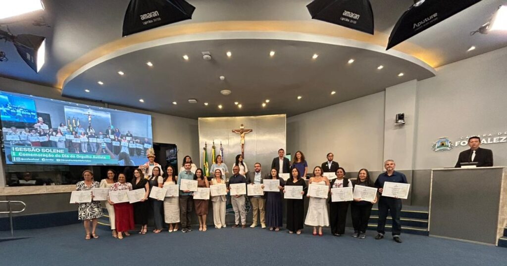 Em alusão à campanha Abril Azul, mês mundial de conscientização sobre o Transtorno do Espectro Autista (TEA), a Câmara Municipal de Fortaleza realizou, na última semana, uma solenidade especial em reconhecimento a iniciativas que contribuem para a inclusão social. Na ocasião, Rosemeire Matos, presidente do Instituto Aço Cearense, foi homenageada pelo trabalho desenvolvido em prol da promoção de direitos e da inclusão de pessoas autistas.