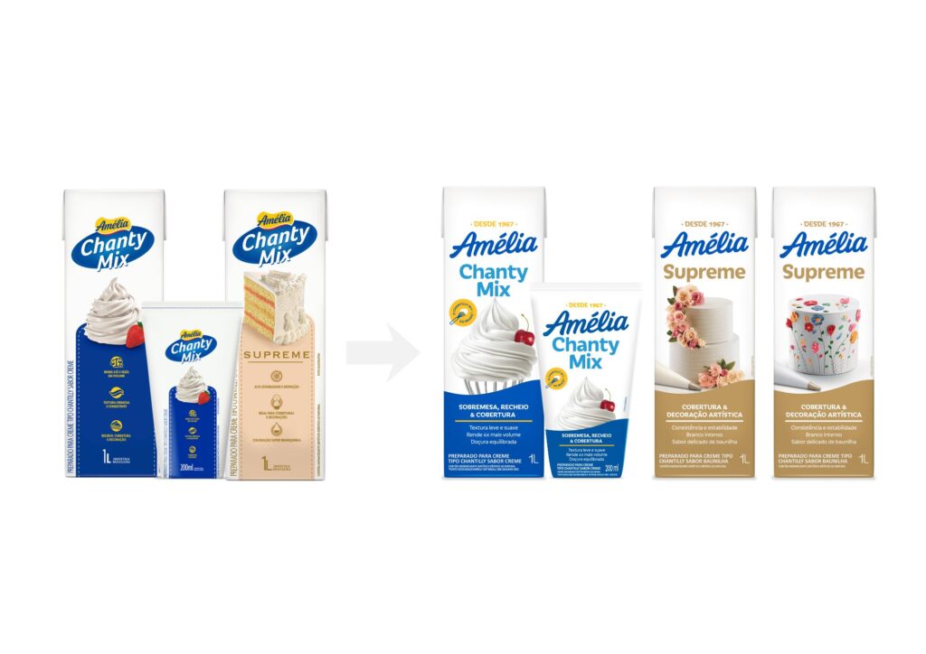 A marca Amélia, pertencente à Vigor Alimentos e reconhecida por sua linha de chantilly, passa por um reposicionamento estratégico que atualiza sua presença no mercado e reforça sua conexão com profissionais da confeitaria e panificação. Sob a nova assinatura “Na medida dos seus sonhos”, o rebranding foi conduzido pela CBA, enquanto o redesign das embalagens ficou a cargo da Spice Design.