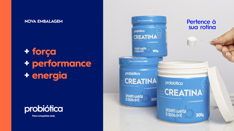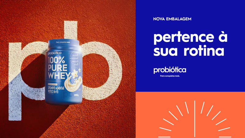 A nova marca da Probiótica estará estampada nas embalagens dos produtos, com uma identidade visual mais moderna, alinhado aos valores e inovação da marca, ampliando seu alcance para territórios que vão além da nutrição esportiva, como carreira, educação e qualidade de vida. Inicialmente os novos rótulos serão disponibilizados nas creatinas e em três sabores do 100% Pure Whey – chocolate, baunilha e morango.