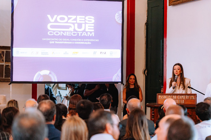 Nomes de peso da comunicação regional e nacional reuniram-se na manhã desta quarta-feira (4), no Salão Nobre da Associação Comercial da Bahia, para participar do “Vozes que Conectam”. Realizado pela Associação Comercial da Bahia, em parceria com a Abracom e apoio da AC Comunicação, o evento promoveu dois painéis que tinham como temáticas o futuro da comunicação com a chegada da TV. 3.0 e a importância da integridade das informações para a sociedade brasileira.